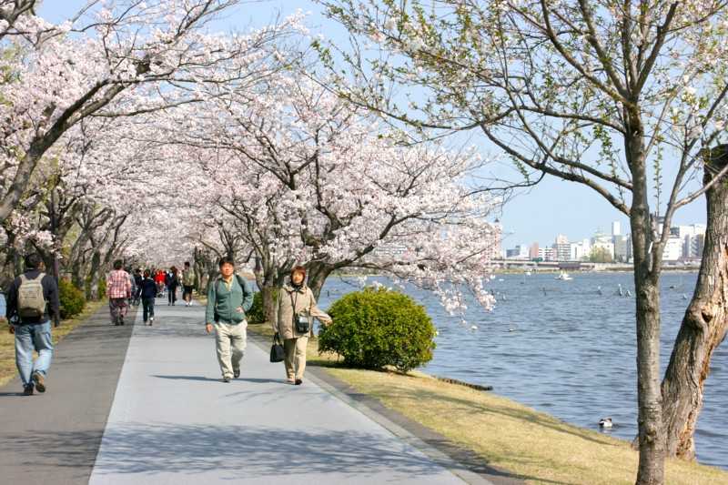 千波湖公園は四季を通じいろいろな花が咲き乱れ、静かで好きな公園です。1周約3kmのひょうたん型の湖です。